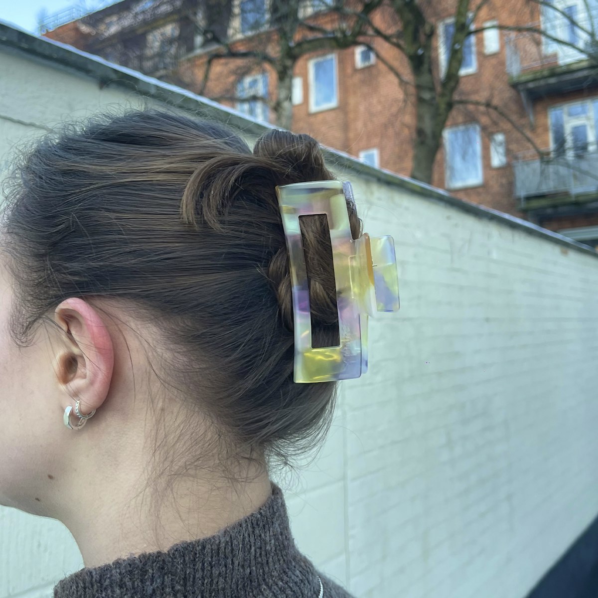 Square Hairclaw Golden Lavender er ideell til både hverdagsbruk og spesielle anledninger, og gjør det enkelt å skape en elegant og polert look.