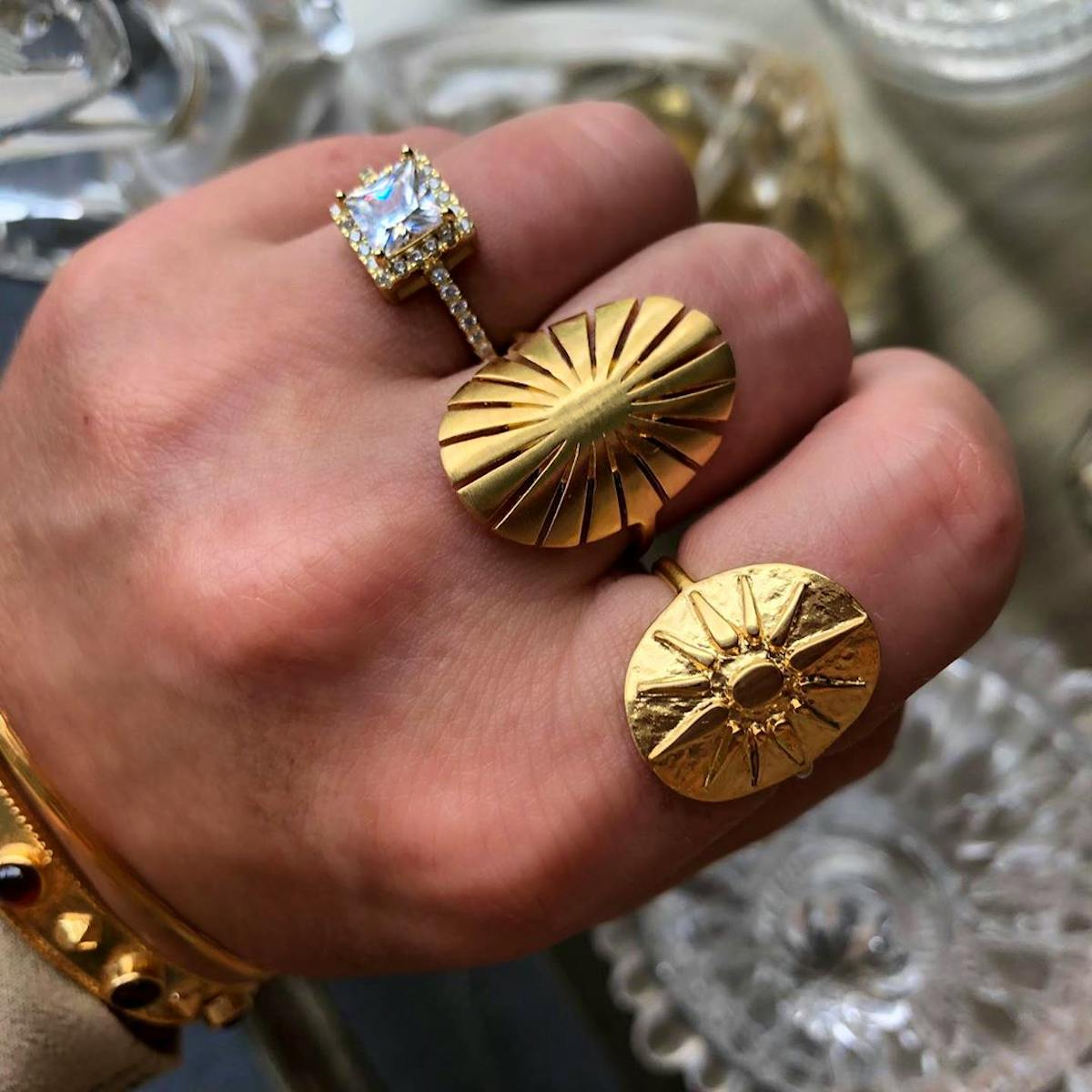 Utrolig luksuriøs og vakker ring med en klar firkantet zirkon i midten og små zirkoner rundt både den store zirkonen og selve ringen. Ringen er i høykvalitets sterlingsølv 925 eller med 1 mikron 24 kt. gullbelegg på toppen av sterlingsølv 925.