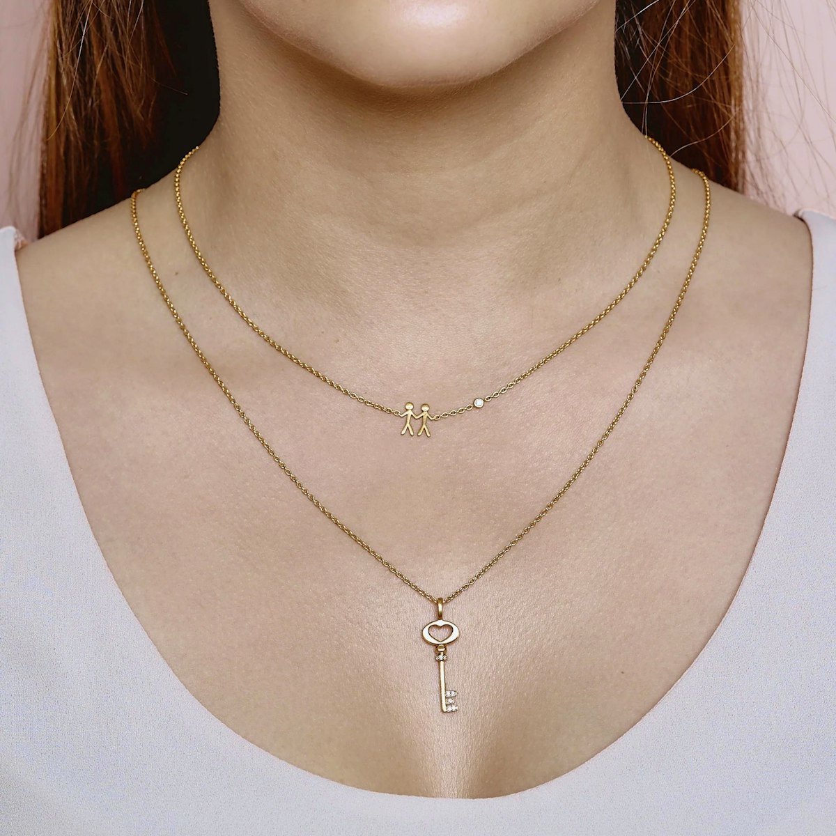 Inspirasjonen bak Together My Love 2 Necklace stammer fra ideen om den unike kjærligheten som binder to mennesker sammen. Halskjedet er skapt som en subtil hyllest til det spesielle båndet som eksisterer mellom deg og din kjære, og fungerer som en elegant påminnelse om den dype forbindelsen dere deler.