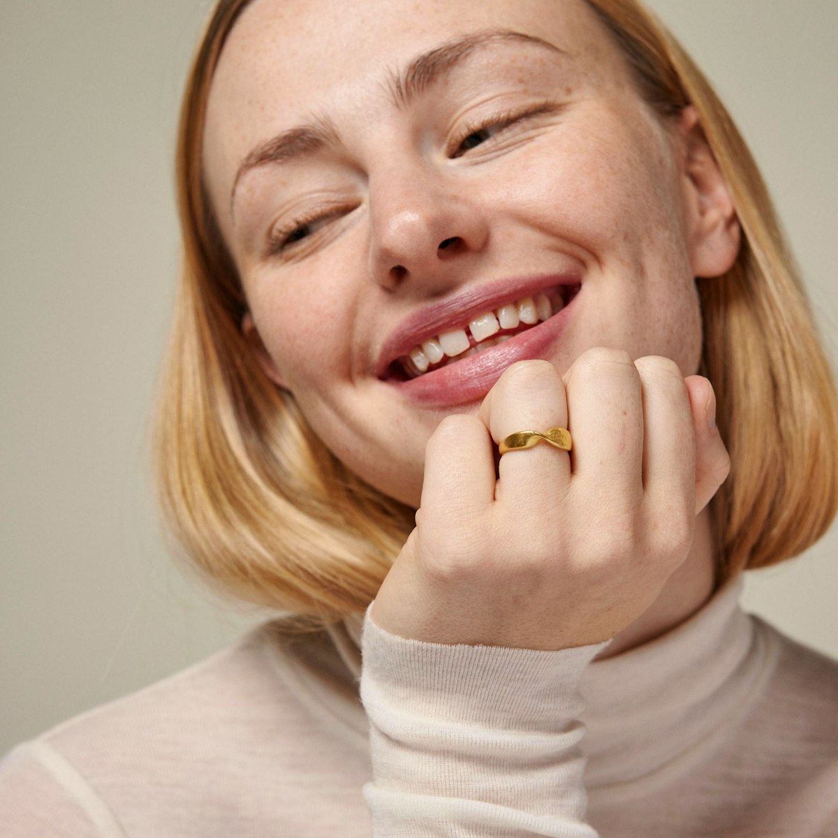 Adele-ringen belagt med 18 karat gull er en ideell hverdagsring med en unik vri. De to ulike overflatene utfyller hverandre på en vakker måte, og hver av dem har sitt eget håndlagde uttrykk og sin egen struktur. Adele-ringen i gull er behagelig og lett å bære, og den vil garantert bli en av dine nye favorittringer. Ringen er også tilgjengelig i sølv.