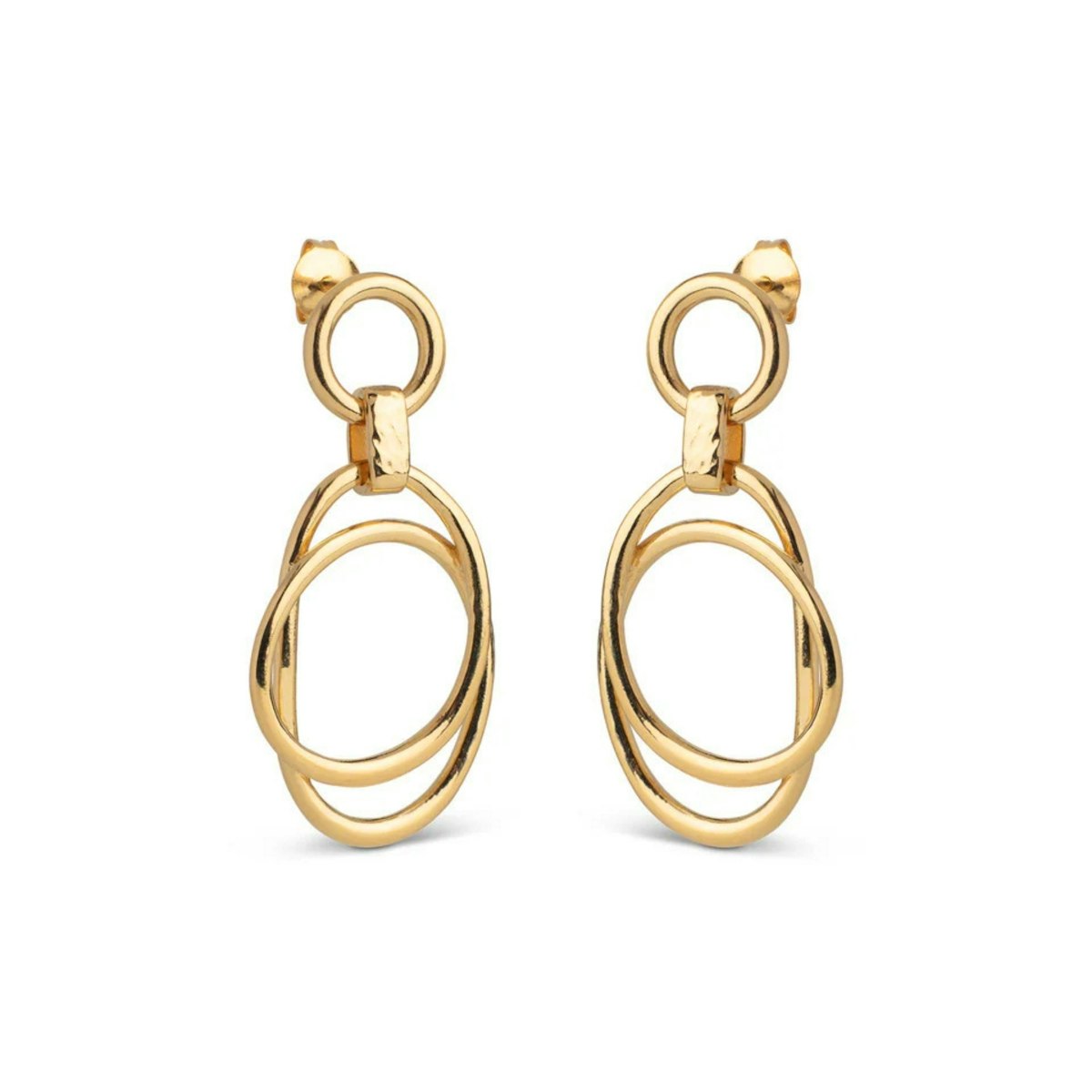 Carina Earrings fra Enamel Copenhagen er en elegant og karakterfull ørering som klarer å kombinere myke former og rå detaljer i et balansert design. Øredobbene består av organiske ringer som henger fritt og skaper en vakker, naturlig bevegelse hver gang du bærer dem. Kombinasjonen av de flytende formene og den hamrede overflaten gir smykkene et levende og sanselig uttrykk.