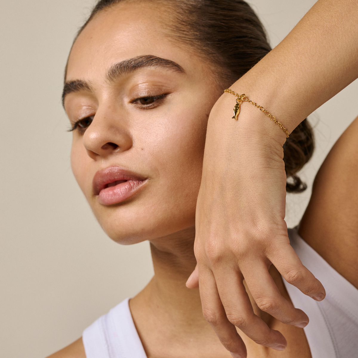 Flowing Fish er en del av vårt amulettkonsept og symboliserer evnen til å tilpasse seg livets forandringer med letthet. Akkurat som fisken som glir gjennom vannet og følger strømmen, oppfordrer dette smykket deg til å omfavne livet med ro og harmoni, selv når det går raskt.
