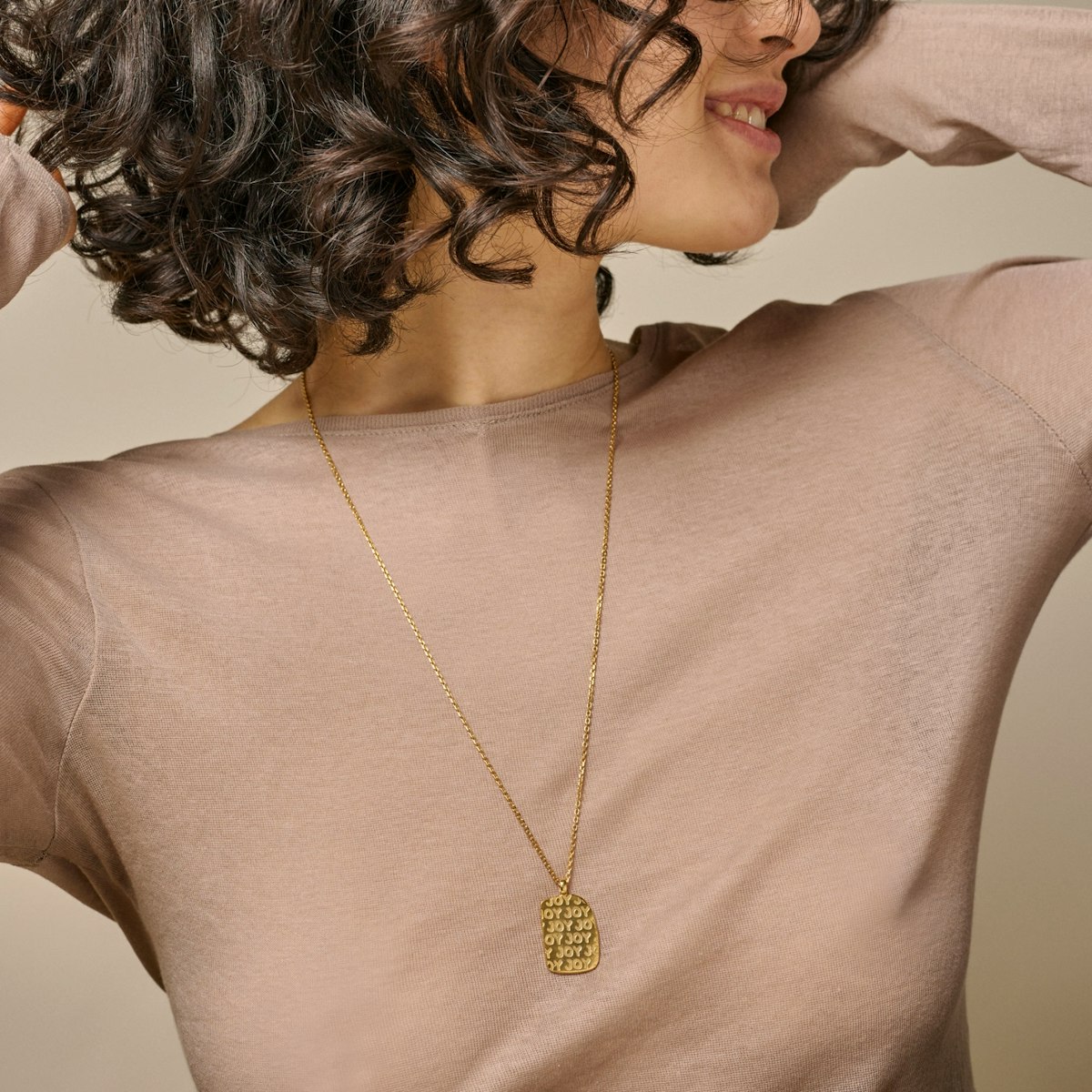 ENAMEL Copenhagen streber etter å bringe glede inn i designene sine. Dette bemerkelsesverdige halskjedet er et levende bevis på dette. Det feirer gleden i hverdagen og oppfordrer oss til å dele smil og positivitet med dem rundt oss. Joy-halskjedet er et symbol på livets gleder, skapt for å minne oss på å sette pris på de små øyeblikkene og spre glede i verden. Halskjedet er laget av førsteklasses materialer, inkludert 925 sterlingsølv og belagt med 18 karat gull, og er ikke bare et smykke, men også en påminnelse om å finne skjønnhet i det enkle og glede i hverdagen. Med sitt elegante design og symbolske betydning er Joy-halskjedet en påminnelse om å sette pris på gleden i livet og dele den med andre.