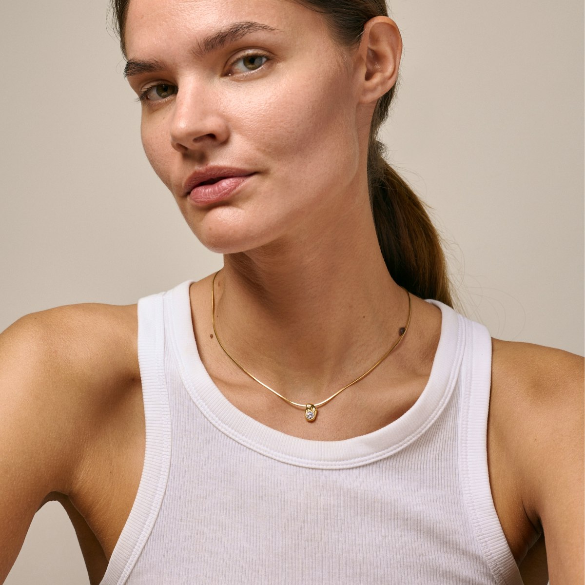 En av de mest bemerkelsesverdige egenskapene ved Masha-halskjedet er at anhenget er avtakbart. Dette gir deg muligheten til å bære det unike slangekjedet alene, noe som skaper et mer diskret og stilig uttrykk, perfekt til hverdagsbruk eller mer formelle anledninger.