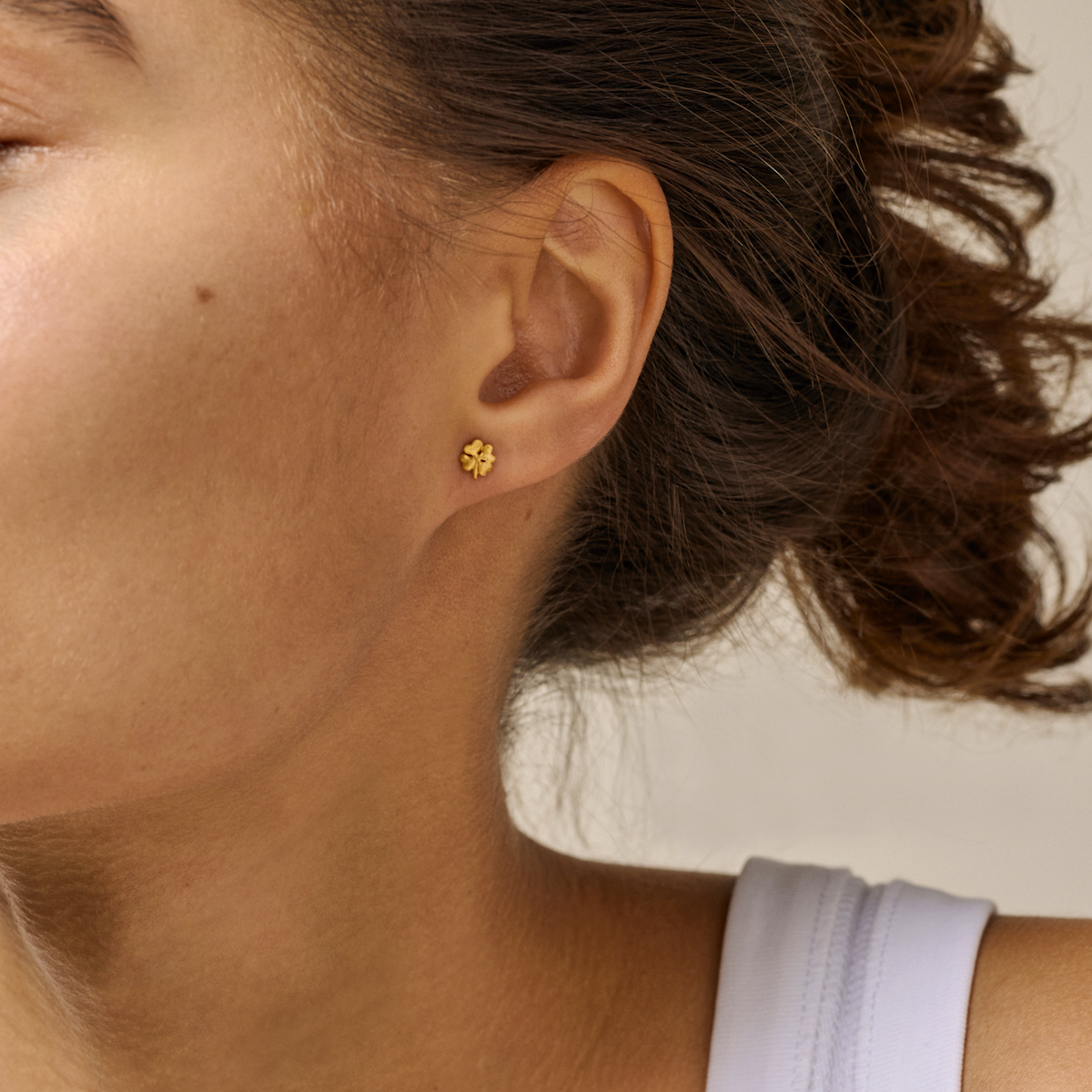 Disse delikate og organisk formede kløverørestikkene er designet med smakfulle detaljer som tilfører stilen din et subtilt, men likevel meningsfylt preg. De er laget i 925 sterlingsølv og belagt med 18 karat gull, og har en liten og elegant størrelse som gjør dem perfekte til hverdagsbruk. Firkløveren er et klassisk symbol på lykke, noe som gjør disse ørestikkene til en vakker gaveidé eller et spesielt tilskudd til din egen smykkesamling. For deg som setter pris på smykker med symbolverdi og tidløs mening, er Organic Clover et opplagt valg. Serien finnes også som armbånd og halskjede.