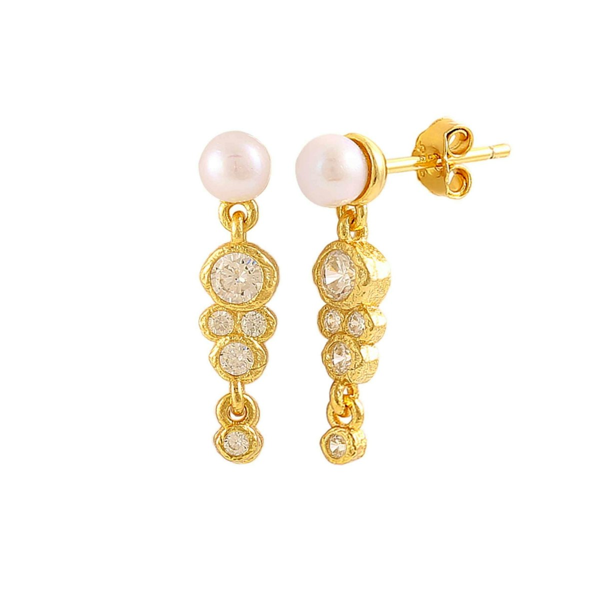 Scarlet Earring kommer i to elegante varianter: håndlaget i 925 sterlingsølv eller håndlaget i 18K gullbelagt sterlingsølv. Begge versjonene måler 2 cm i lengden, en størrelse som gir litt ekstra volum uten at det går på bekostning av komforten. Den klassiske perlen på toppen gir Scarlet Earring et tidløst preg, mens de glitrende steinene på undersiden tilfører glamour og skaper et smykke som kan brukes til både hverdag og fest, store og små anledninger.