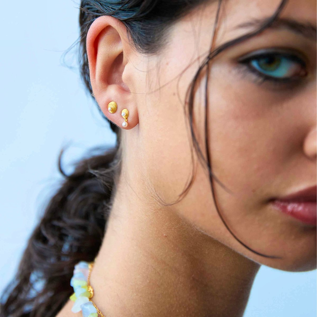 Omfavn sommerstemningen med vores charmerende øreringe. Inspireret af havets skønhed og strandens lethed, disse øreringe er håndlavet i 18 karat forgyldt sterlingsølv og prydet med 2 elegante ferskvandsperler. Et let og luksuriøst udtryk for sommerglæder. Diameter: 0,6 cm.