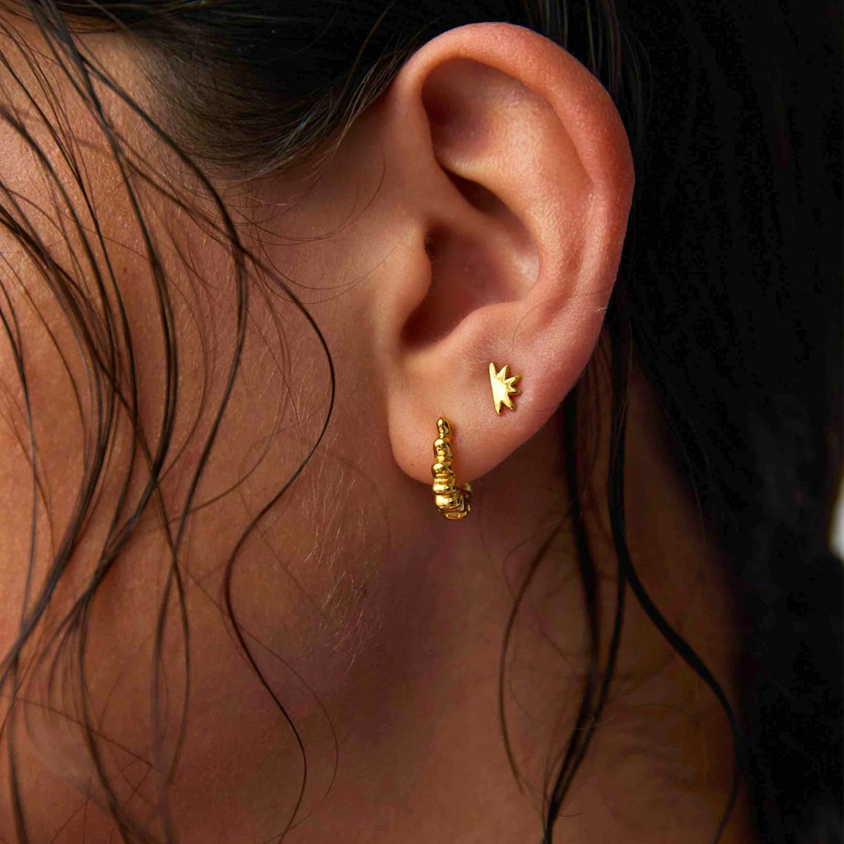 Boost sommerstilen din med disse bølgeøreringene. Et elegant statement som vekker minner om stranden og bølgenes lekne dans. Håndlaget i 18 karat gullbelagt sterlingsølv. Diameter: 1,2 cm.