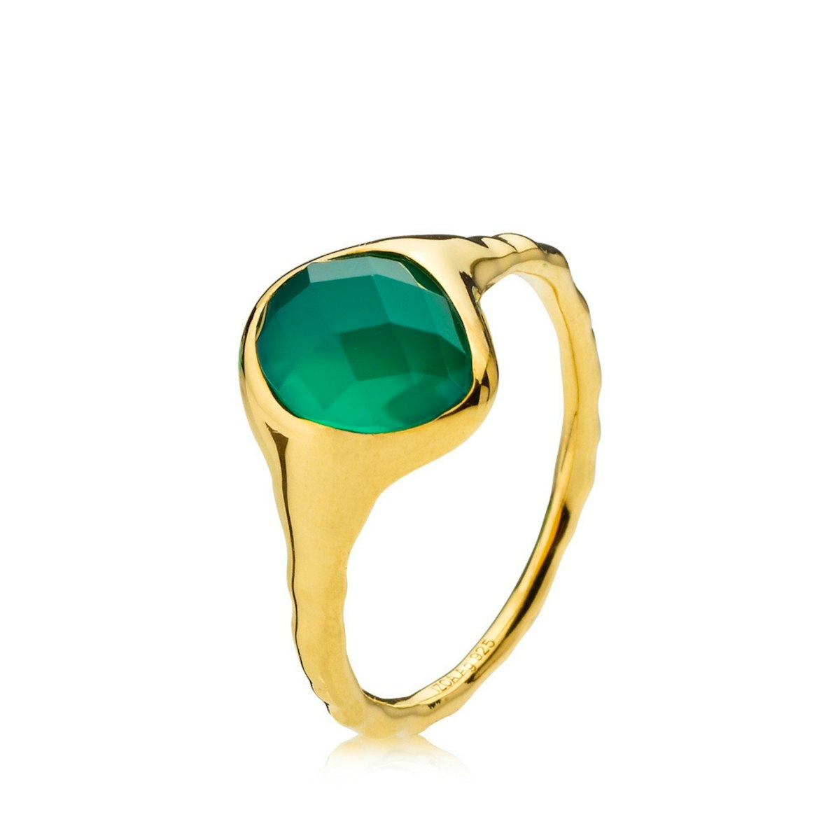 Athena Green Ring Large er et smykke som kombinerer tidløs eleganse med naturens livlige farger. Den store, fasettslipte grønne onyxsteinen er ringens naturlige midtpunkt og tilfører et streif av dybde og luksus til looket ditt. Steinens mettede grønne farge fanger lyset på en vakker måte og skaper en harmonisk balanse mellom intensitet og ro. Denne kombinasjonen gjør ringen perfekt til både hverdagsbruk og spesielle anledninger der du ønsker å understreke din personlige stil.