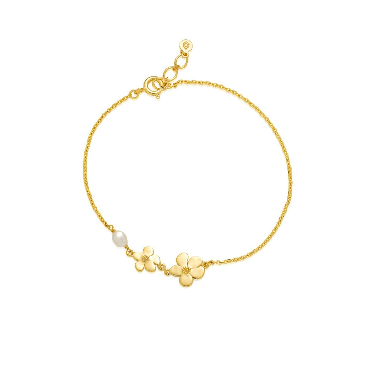 Dette charmerende og stilfulde PANSY armbånd har et design bestående af to flade blomster, der pryder kæden og afsluttes smukt med en ferskvandsperle.