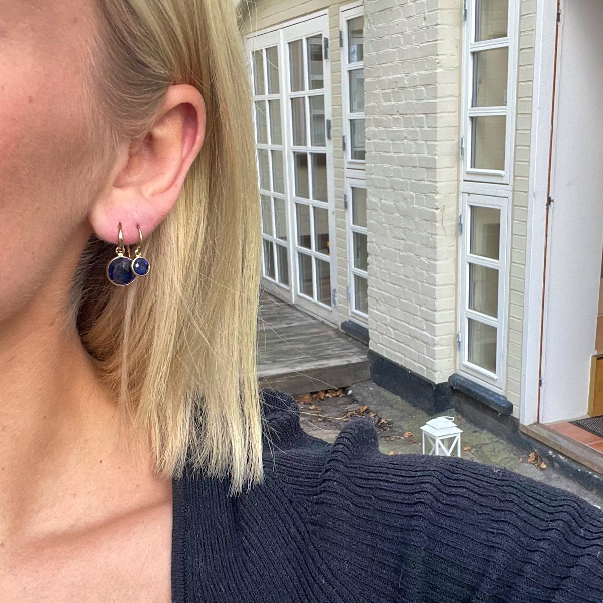 Øreringe fra Izabel Camille med små facetslebne runde vedhæng af grøn onyx.