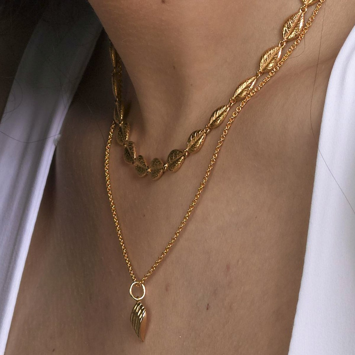 Sage Necklace fra Izabel Camille er et smykke som kombinerer naturens ro med tidløs eleganse. Halskjedet er inspirert av de myke formene til blader, og den detaljerte bladdesignen gir et romantisk og organisk uttrykk som aldri går av moten. Med sin lette, men slående design er det ideelt å bære alene som et diskret blikkfang eller sammen med andre kjeder for en mer personlig lag-på-lag-look. Lengden kan justeres fra 30 til 38 cm for å passe til enhver stil og anledning.