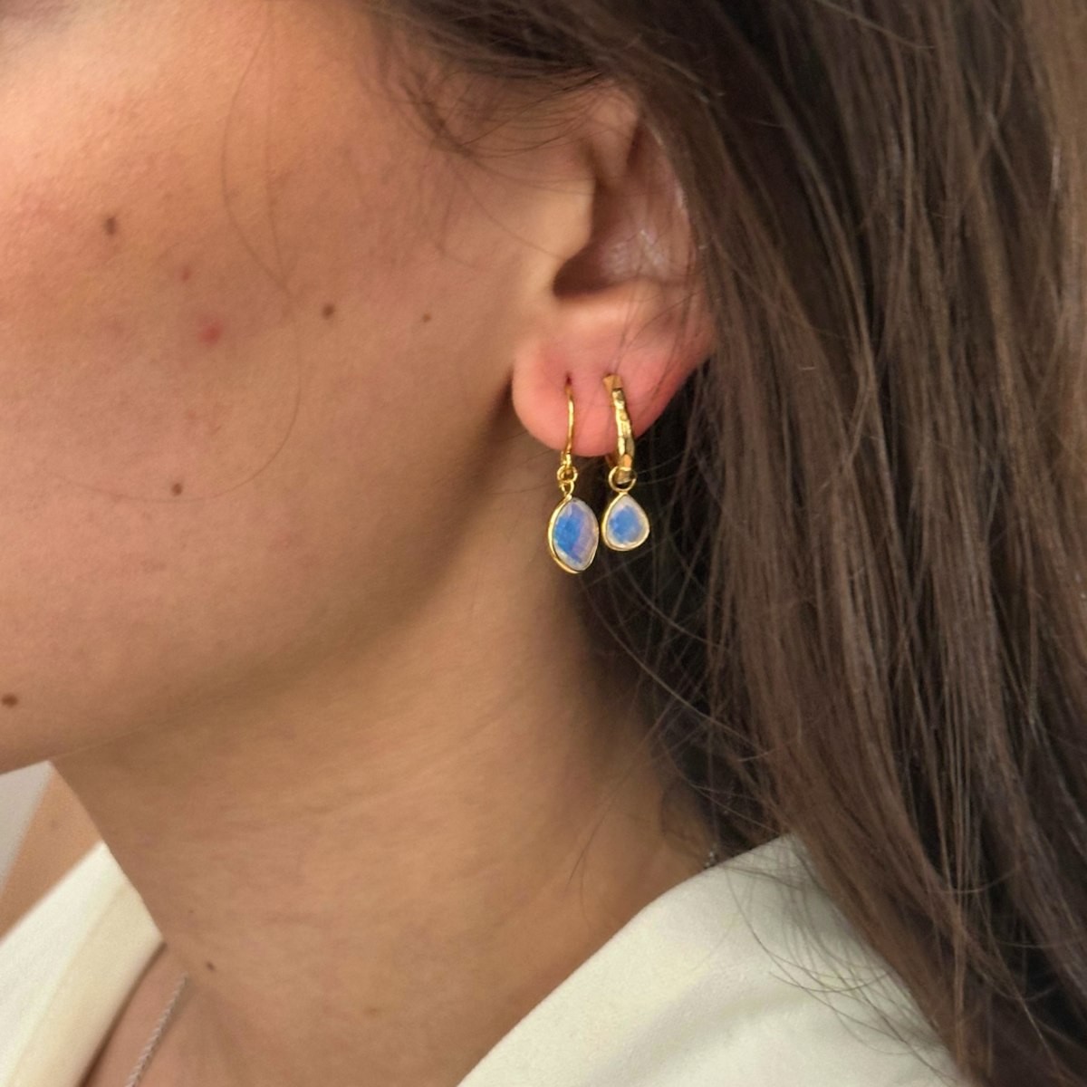 Fargene i Sara Rainbow Earrings er sammensatt slik at de skaper en naturlig balanse mellom det livlige og det raffinerte. De små, polerte steinene fanger lyset på en vakker måte og gir øredobbene et lett glimt i hver bevegelse. Den regnbueinspirerte paletten gjør dem allsidige og enkle å style. De kan bæres alene som et statement-smykke, men fungerer også fint sammen med andre smykker for en mer lagvis og personlig look.
