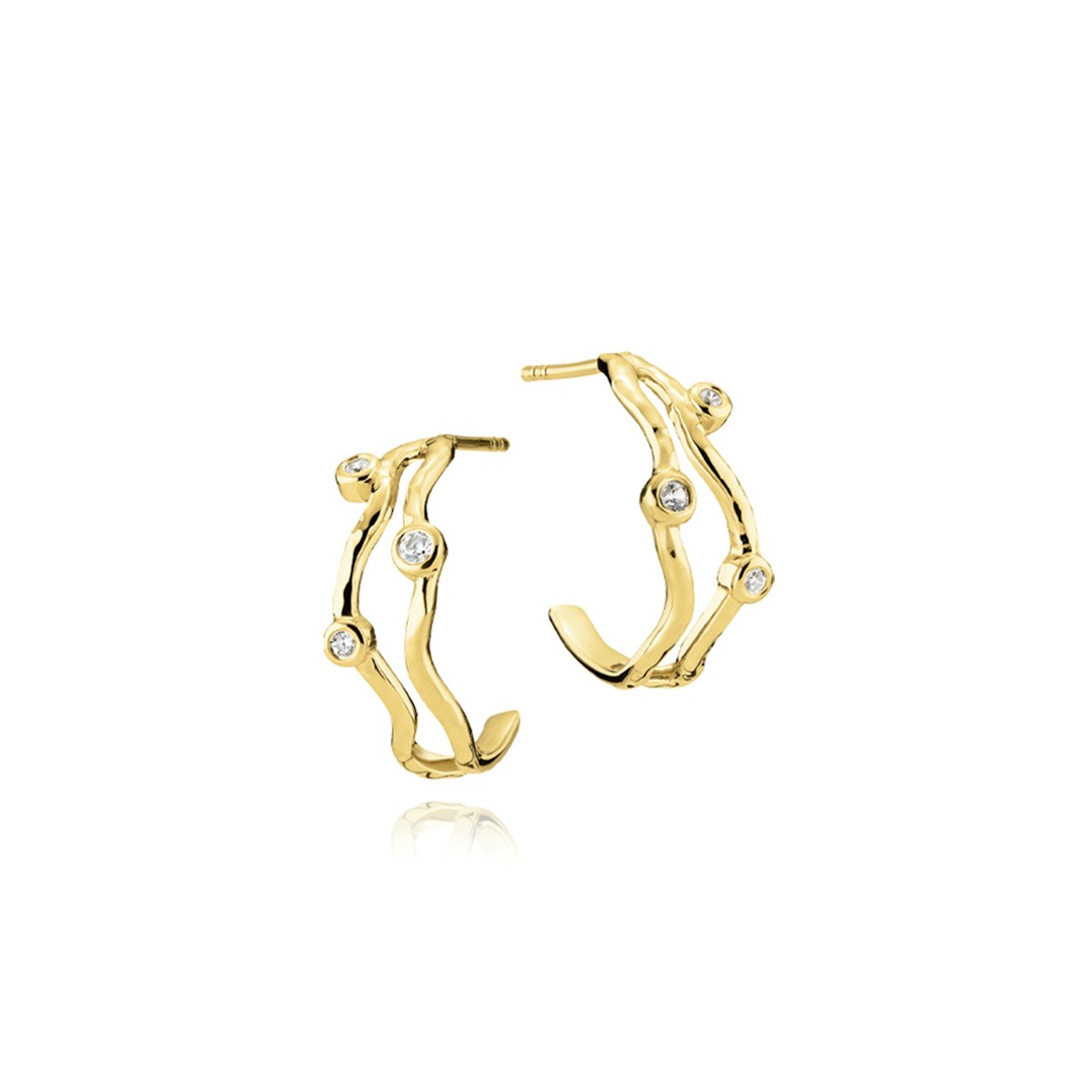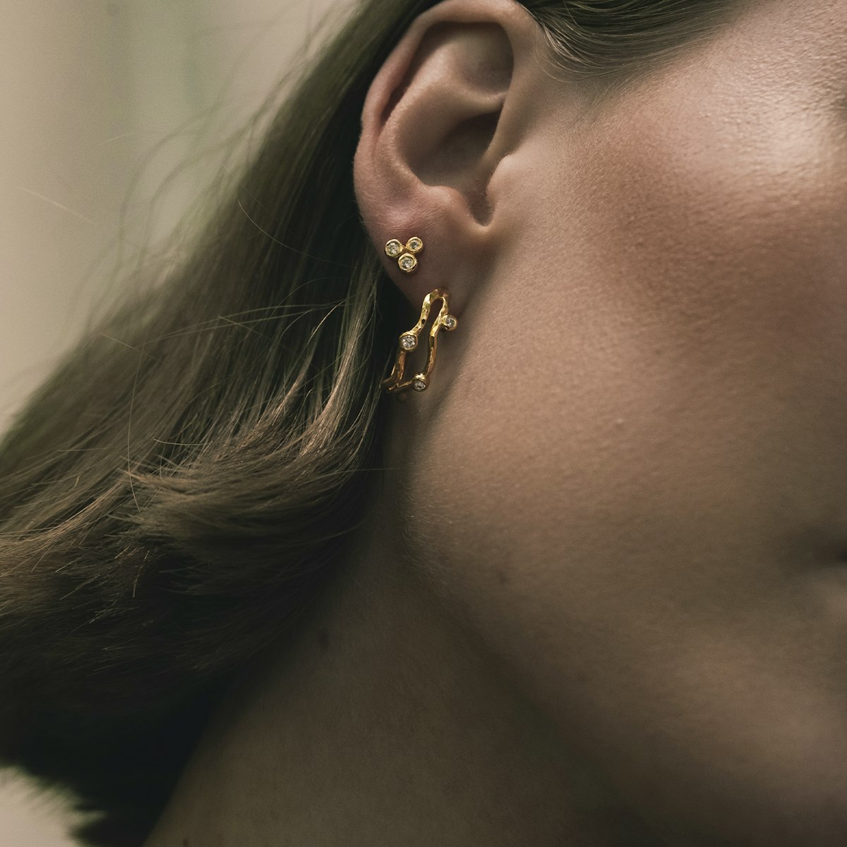 Vera-øreringene fra Izabel Camille er en hyldest til enkelhedens skønhed, men med et subtilt strejf af glamour. Deres todelt, bølgeformede struktur er en smuk manifestation af smykkets håndværksmæssige finesse og æstetiske appel. Hver detalje er omhyggeligt udformet for at skabe en harmonisk balance mellem elegance og modernitet.