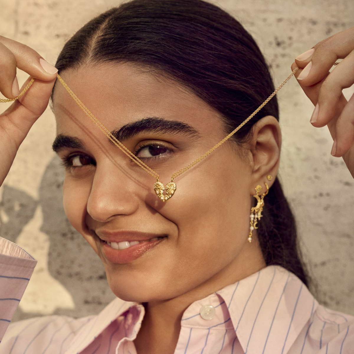 Keeper-halskjedet er et unikt smykke som på en vakker måte symboliserer det sterke båndet mellom kjærlighet og fellesskap. Halskjedet består av et dobbeltkjede med to halve hjerter som til sammen danner en helhet - et design som på en elegant måte gjenspeiler tanken om at to blir til ett når de forenes. Halskjedet er ideelt for deg som ønsker å bære et personlig smykke med en dypere mening. Det doble kjedet gir halskjedet et moderne og stilrent uttrykk som enkelt kan kombineres med andre smykker, men som også fungerer fint alene.