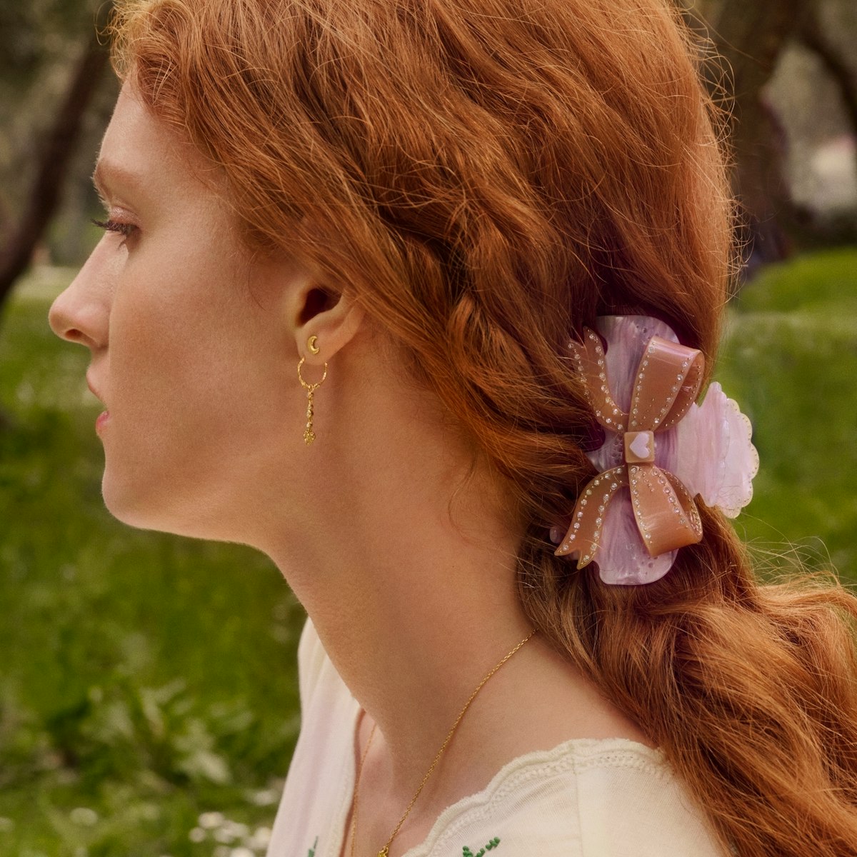 Hårspenne i acetat og utsmykket med fine rhinestones, som gir frisyren din et sofistikert preg. Med en bredde på 9,7 cm og en høyde på 6,5 cm gir den et solid og holdbart feste, samtidig som den ser elegant og diskret ut i håret ditt.