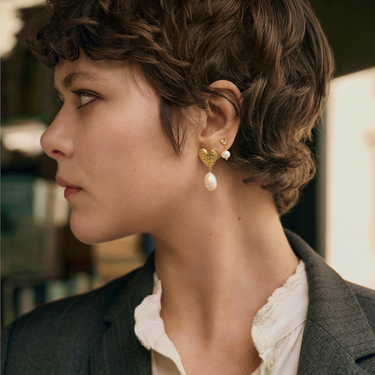Luba øreringene er det perfekte valg for dig, der ønsker at tilføje en kærlig og sofistikeret detalje til din smykkesamling. De smukke hjerteformede vedhæng, belagt med 18K guld, udstråler varme og elegance, mens de delikate ferskvandsperler, der hænger smukt fra øreringen, tilfører et strejf af romantik til dit look. Hver gang du bærer disse smykker, vil de minde dig om de små kærlighedsøjeblikke, som gør hver dag unik.