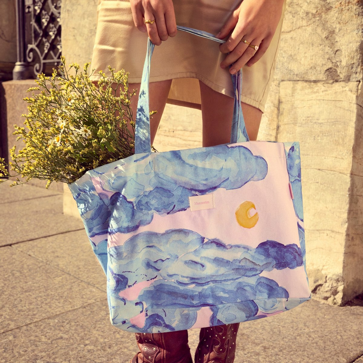 Med sitt karakteristiske Moonshine Rose-trykk kombinerer denne vesken fra Maanesten hverdagsfunksjonalitet med et snev av drømmende eleganse. Det poetiske mønsteret utfolder seg på slitesterkt lerret og skaper en vakker kontrast mellom det praktiske og det estetiske - akkurat slik vi elsker det hos Maanesten.