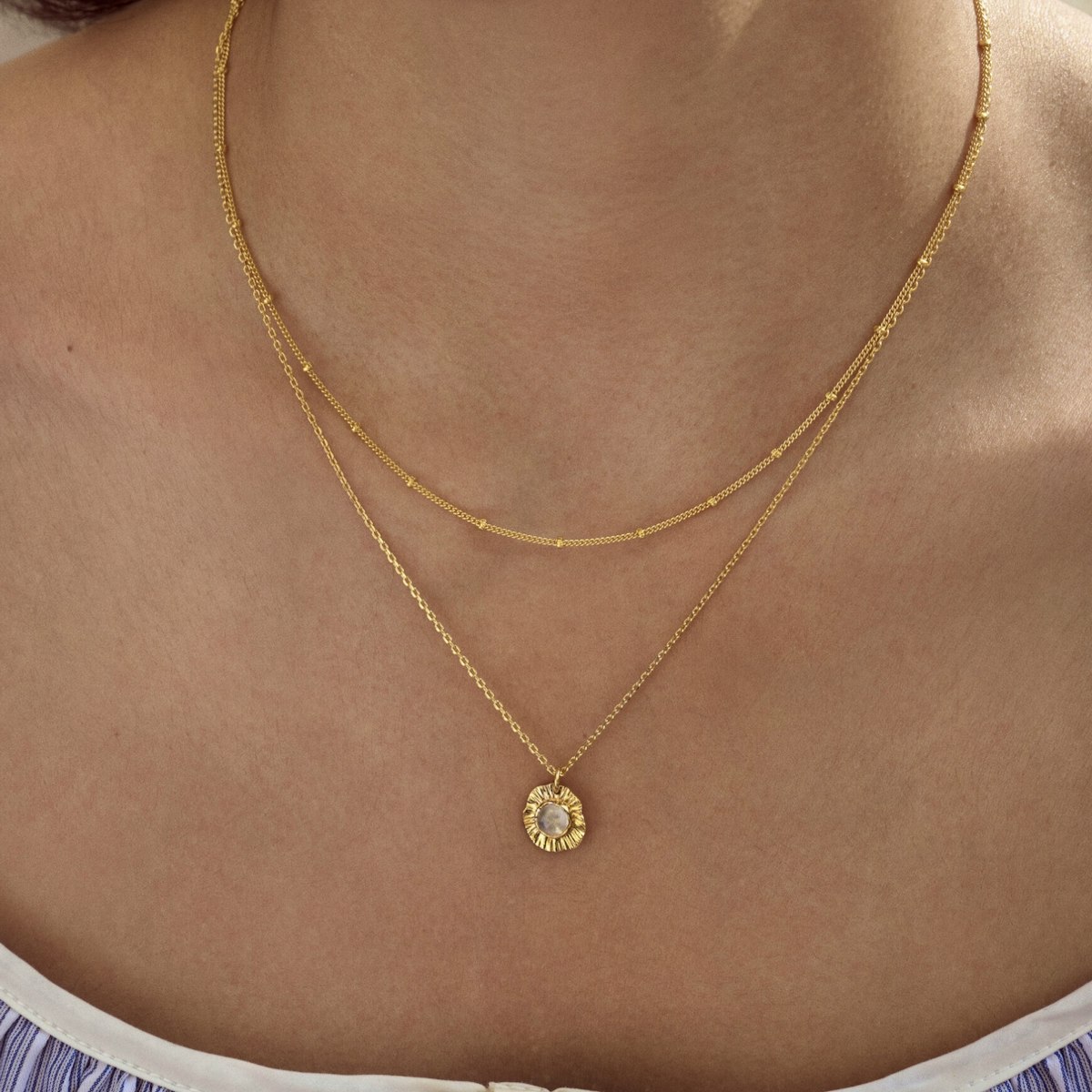 Dykk ned i den fortryllende verdenen til Maanestens mest populære smykke, det ikoniske Nala-halskjedet. Det elegante Nala Choker-halskjedet er innbegrepet av enkelhet og klasse, med fine perler som omfavner hele kjedet og tilfører et subtilt streif av glans. Dets ekstraordinære skjønnhet ligger i dets enkelhet, noe som gjør det til et tidløst smykke som passer perfekt til enhver anledning.