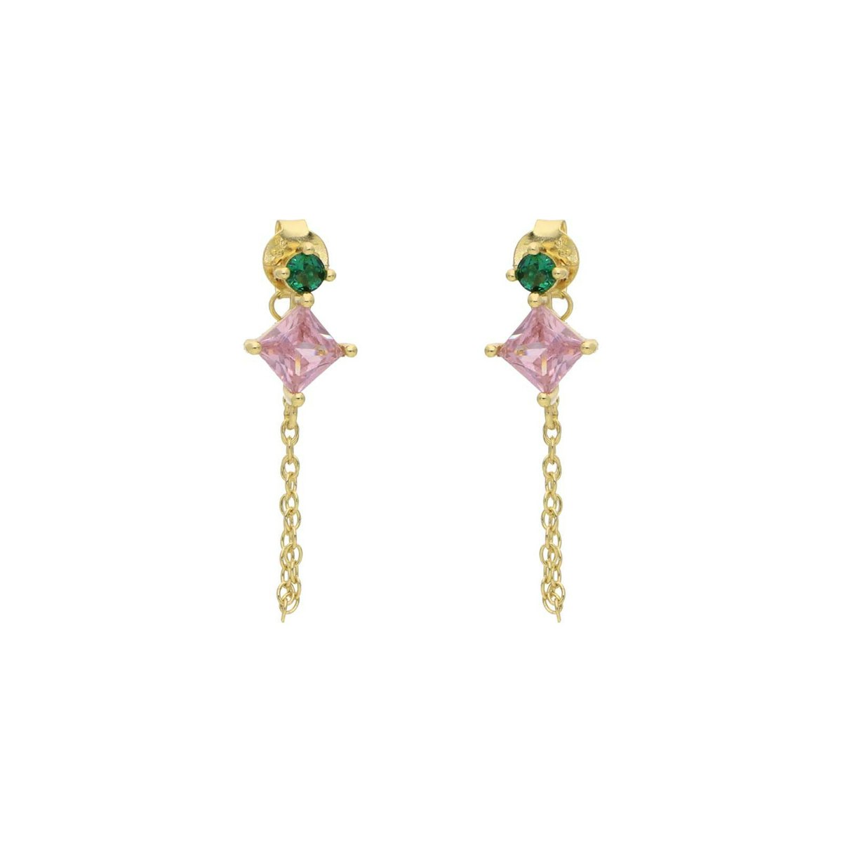 Designet har en grønn rund zirkonia øverst og en firkantet rosa zirkonia i midten som fanger lyset på en raffinert måte. Under den rosa steinen henger et fint kjede som skaper lett bevegelse og gir smykket en levende karakter. Hele looken balanserer mellom det romantiske og det moderne, noe som gjør Alexia-øreringene til et allsidig valg til enhver anledning. Med en lengde på 25 millimeter får du en ørering som er diskret, men likevel dekorativ.
