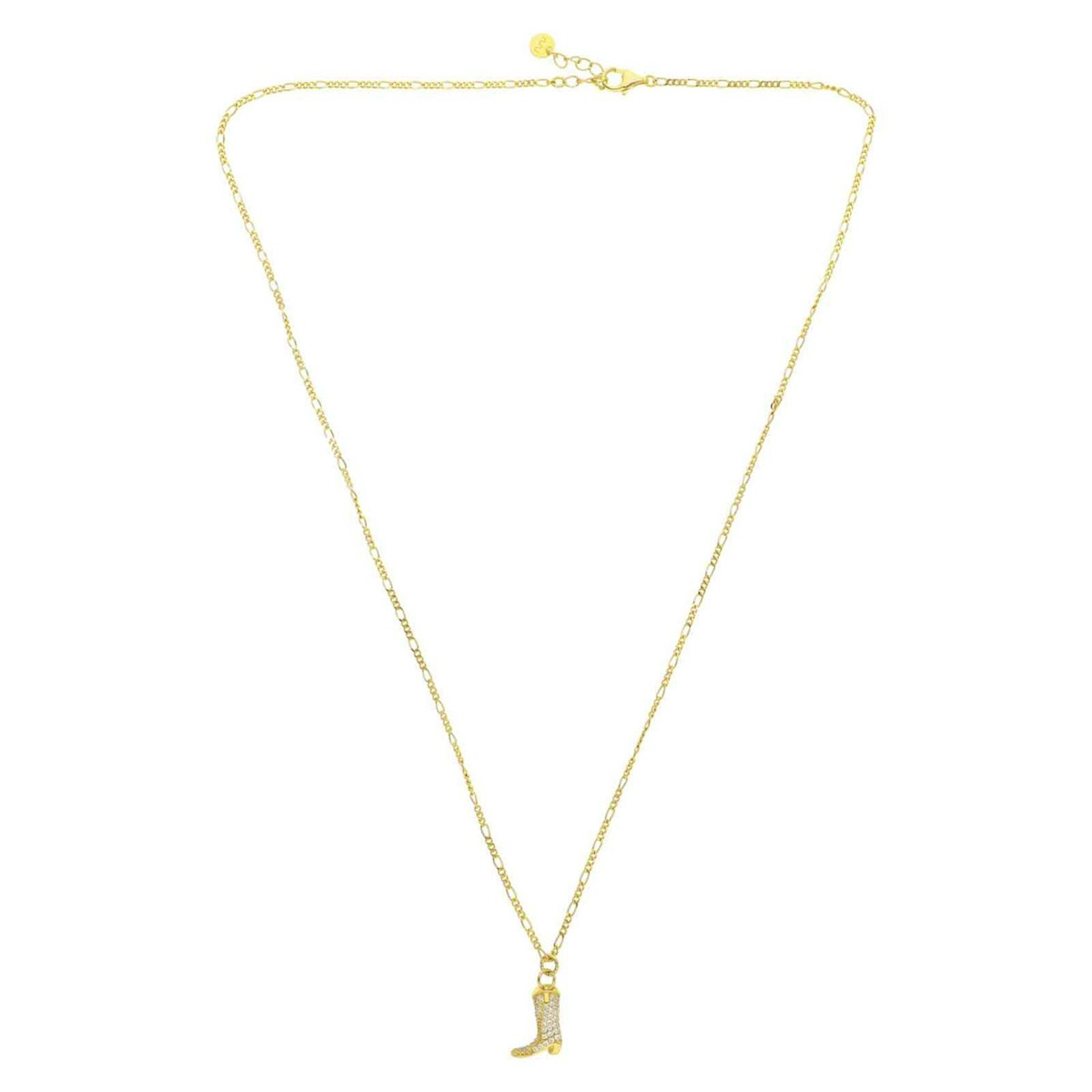 Designet er enkelt og delikat, men detaljene taler for seg selv. Den lille støvelen er dekorert med glitrende sirkoner som fanger lyset og gir halskjedet en subtil glans. Den henger i et elegant 18 karat gullbelagt kjede i sterlingsølv som føles både lett og luksuriøst å bære. Du kan style det alene for et minimalistisk uttrykk eller kombinere det med andre halskjeder for en mer leken og personlig stil.