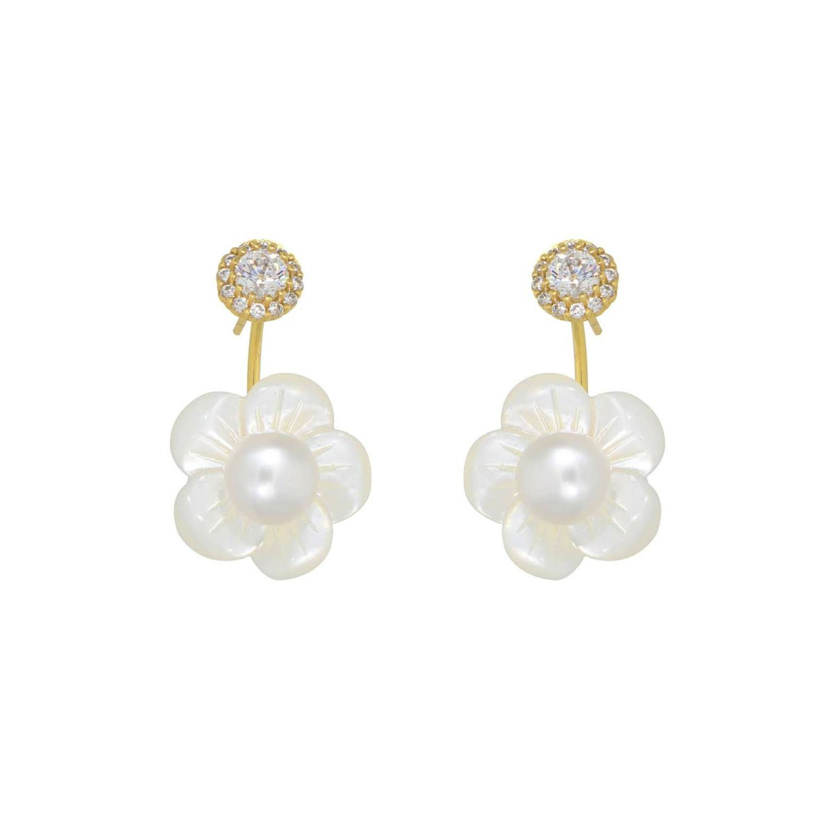 Mabel Pearl Earrings kombinerer klassisk perleskjønnhet med moderne design i et romantisk og luksuriøst design. Disse fortryllende øredobbene er laget i 24 karat gullbelagt resirkulert sterlingsølv 925 og dekorert med glitrende kubiske zirkonia og delikate ferskvannsperler. Det unike blomsterdesignet med en rund, utskåret perlemorsblomst og en sentral perle i midten skaper et grasiøst og feminint uttrykk.