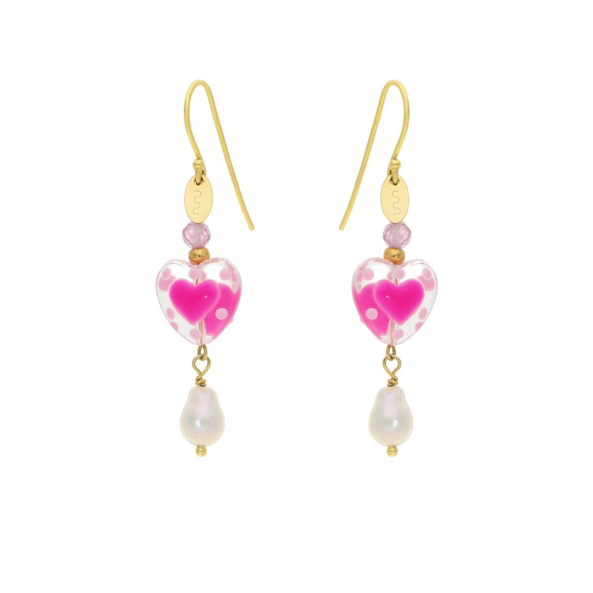 Rosalia Pink Earrings er en fryd for øyet og et perfekt tilskudd til smykkeskrinet for deg som elsker farger, lekne detaljer og feminine former. Øredobbene kombinerer det barnlige og det elegante på en måte som føles både sjarmerende og moderne. Med sine klare rosa glassperler formet som hjerter, pyntet med små prikker og avsluttet med en dråpeformet ferskvannsperle nederst, er de skapt for å glede og vekke oppmerksomhet.