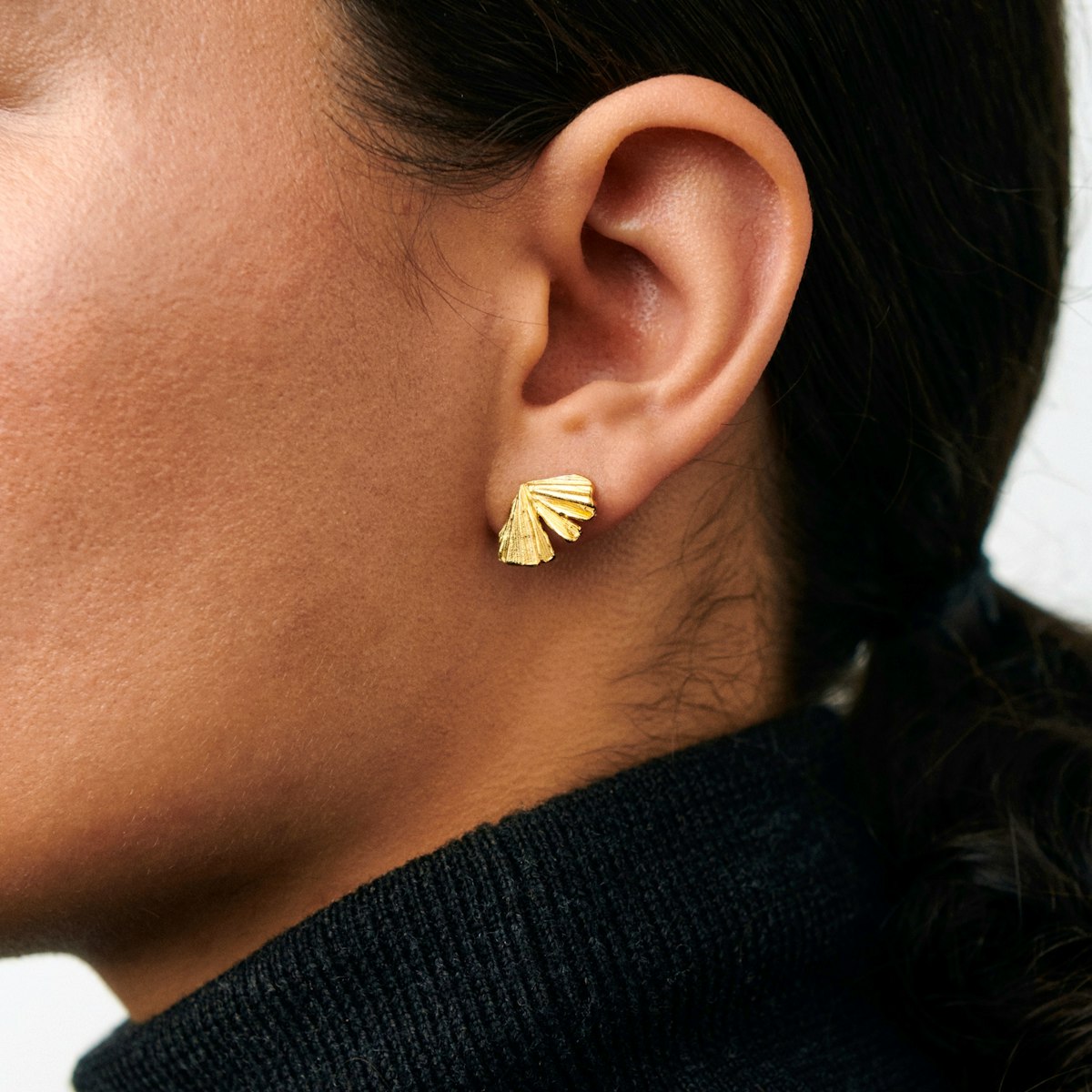 Øredobbene Autumn Leaf fra Pernille Corydon er et par små, bladformede øreringer som fanger den rolige elegansen som kjennetegner naturens egne former. Inspirert av høstløvenes myke silhuetter har de et harmonisk, organisk design med en lett børstet og halvblank overflate som gir en subtil glød når de fanger lyset. De måler 16 mm fra kant til kant, noe som gjør dem perfekte for deg som ønsker et smykke med et rolig, men iøynefallende uttrykk. De kan bæres alene for et minimalistisk uttrykk eller kombineres med andre smykker for et mer personlig uttrykk. Ørestikkene finnes i både sølv og gullbelagt sølv med 18 karat gull, og selges som sett med to.