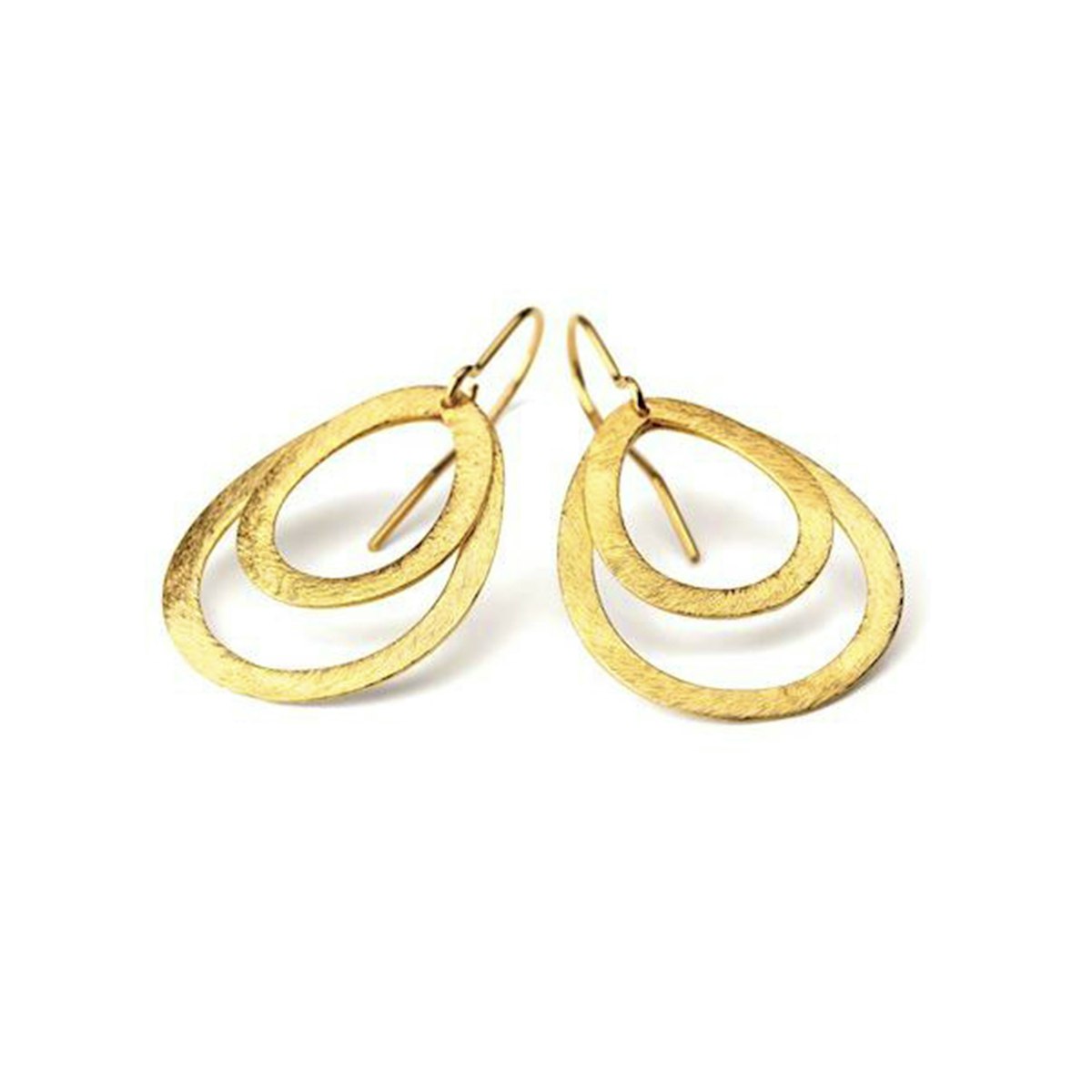 Festlige og feminine øreringe med 2 meget elegante dråbeformede ringe i en ørering, og som giver et luksuriøst look.
