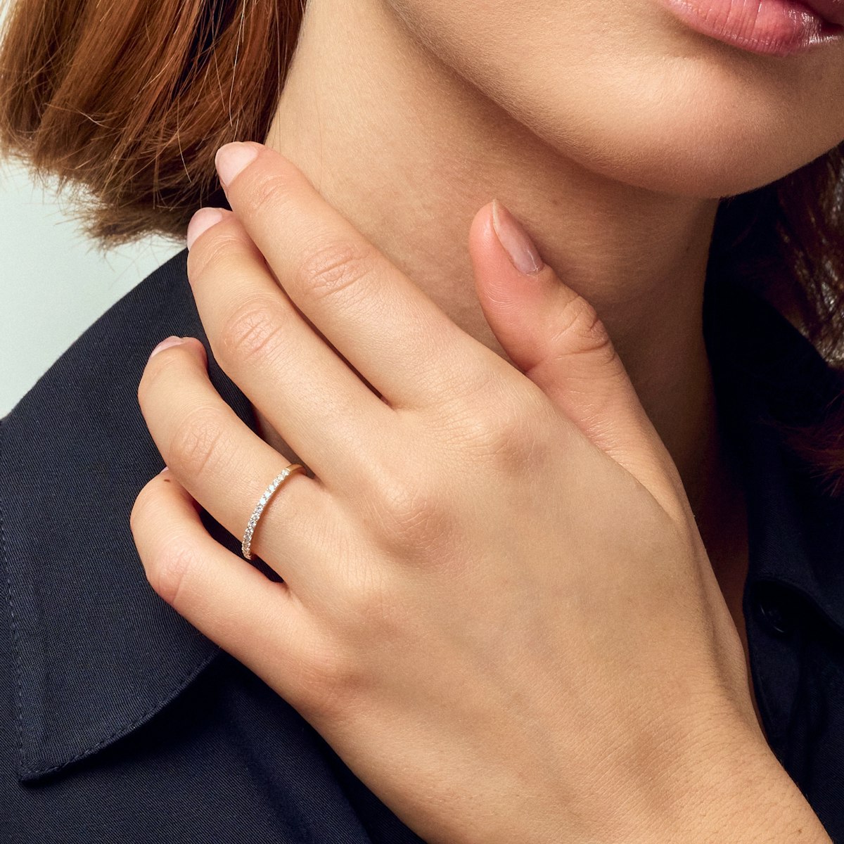 Denne vakre diamantringen er laget for deg som setter pris på diskré luksus og tidløs design. Ringen er innfattet med runde briljantslipte labgrodde diamanter med en total karatvekt på 0,23 ct. De nøye utvalgte diamantene har TW G-H-farge og VS-klarhet, noe som gir en ren og strålende glans som gir ringen et eksklusivt uttrykk - uten å være prangende.