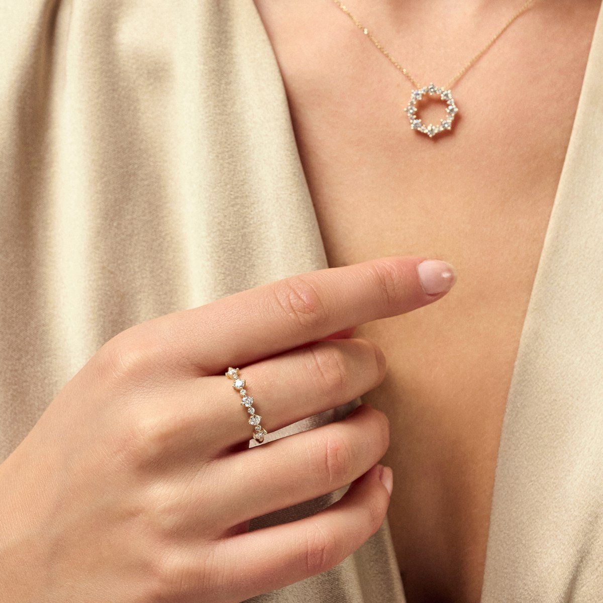 Brina Ring er en diamantring som er skapt for deg som ønsker et smykke med et stilrent og elegant uttrykk. Ringen er innfattet med runde briljantslipte labgrodde diamanter med en total karatvekt på 0,50 ct. Med TW G-H-farge og VS-klarhet utstråler diamantene en klar og funklende glans som elegant fanger lyset og gir ringen et eksklusivt uttrykk.