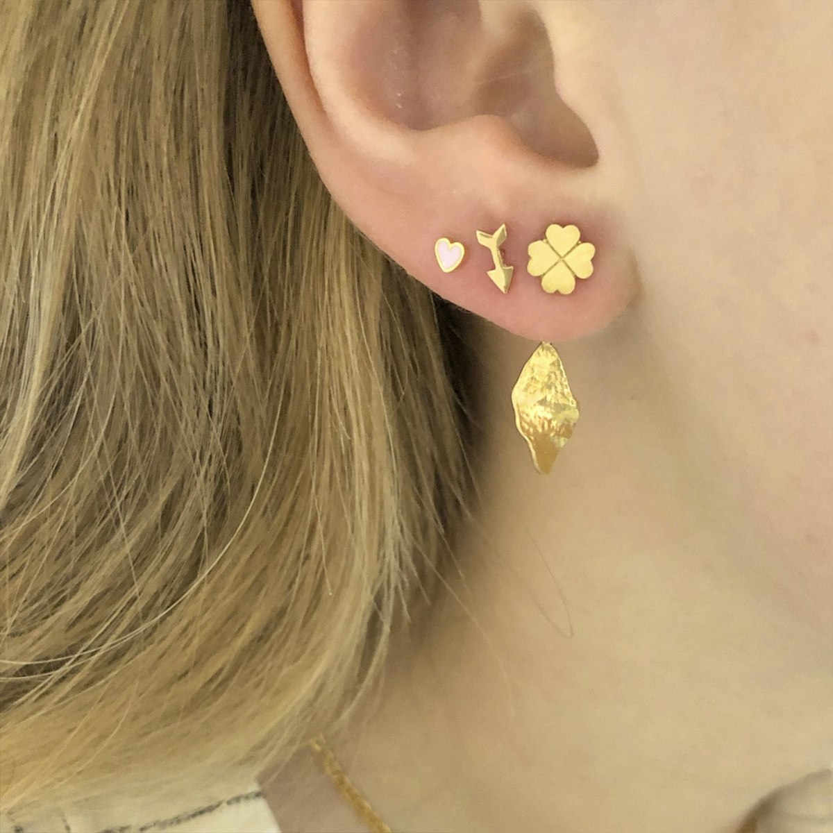 Ile De L'Amour Behind Ear Earring fra STINE A Jewelry er et elegant og stilfuldt smykke, der tilføjer et unikt touch til dit look. Det fine, bankede vedhæng er designet til at sidde bag øret og skabe en sofistikeret dimension til dine øreringe. Perfekt til at mixe og matche med andre smykker, denne detalje giver din stil en eksklusiv kant – hvad enten du går efter et minimalistisk eller et mere iøjnefaldende udtryk.