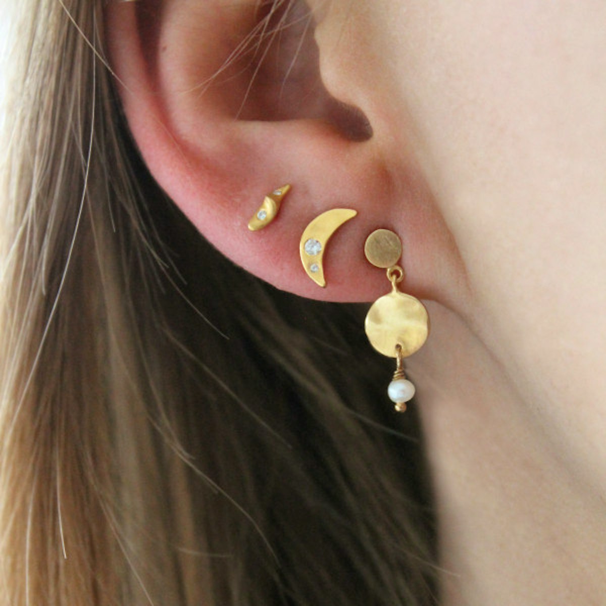 Smuk og magisk måne-ørestik med to zirkoner.