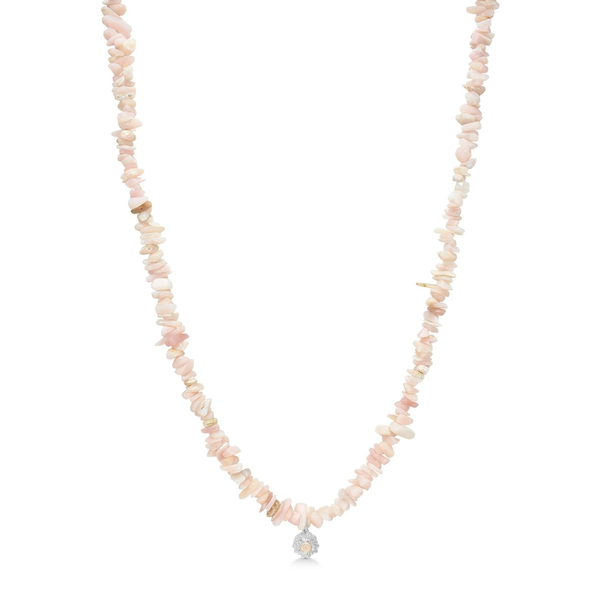 Halskjedet er laget av rosa kunzitt, en naturlig edelsten som varierer i uttrykk og farge. Hver stein er unik, og fargevariasjonene - fra sart rosa til dempet lavendel - gir halskjedet en poetisk og personlig karakter som på en vakker måte gjenspeiler naturens mangfold.